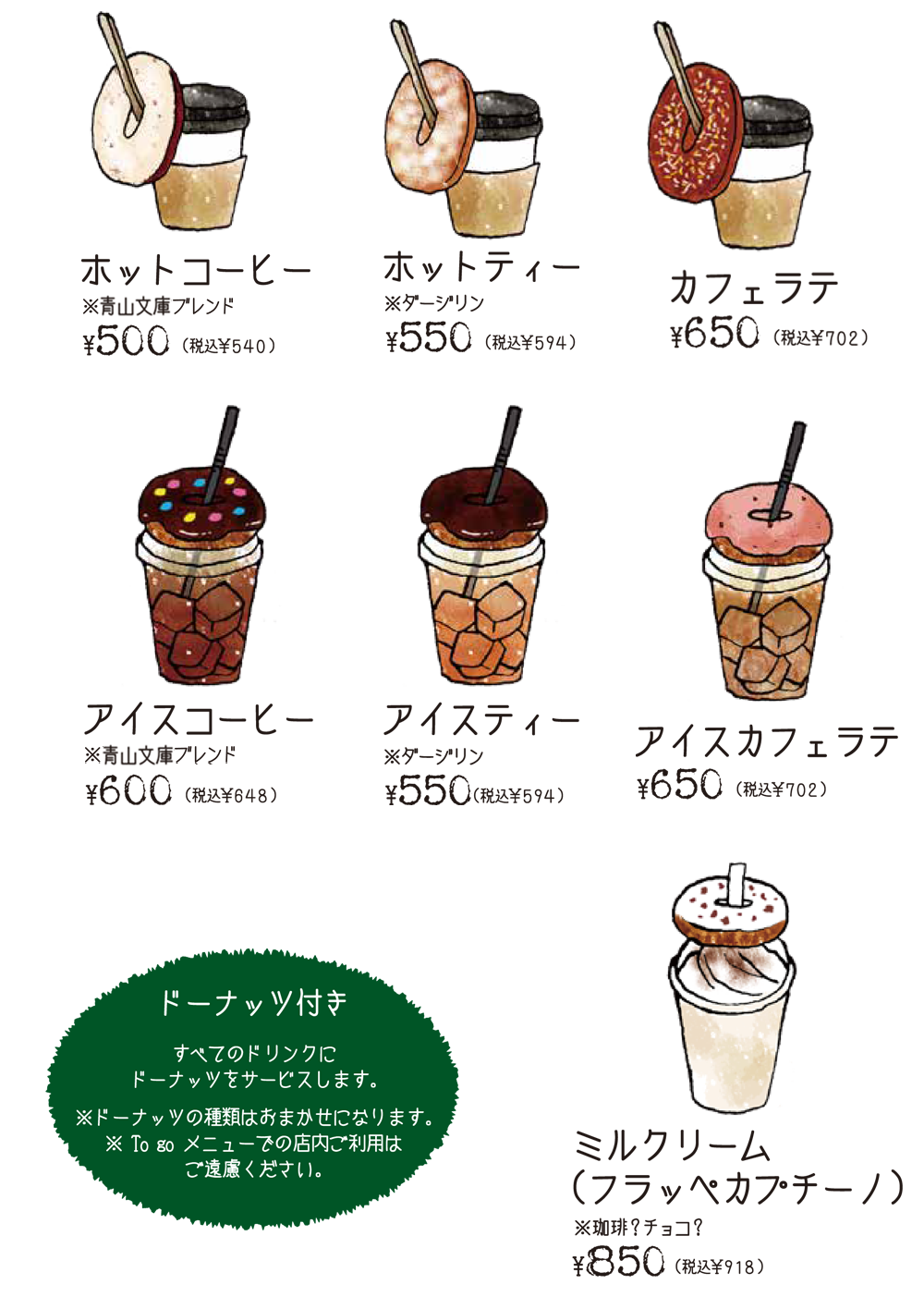 ※メニュー内容、価格などは予告なく変更になる場合もございます。あらかじめご了承ください。