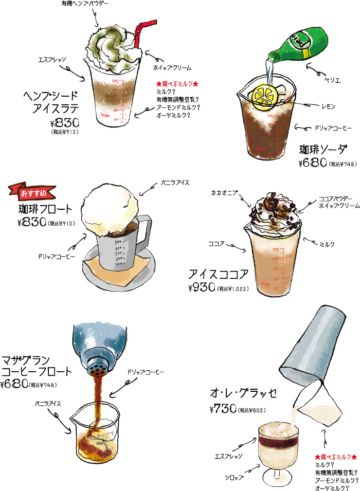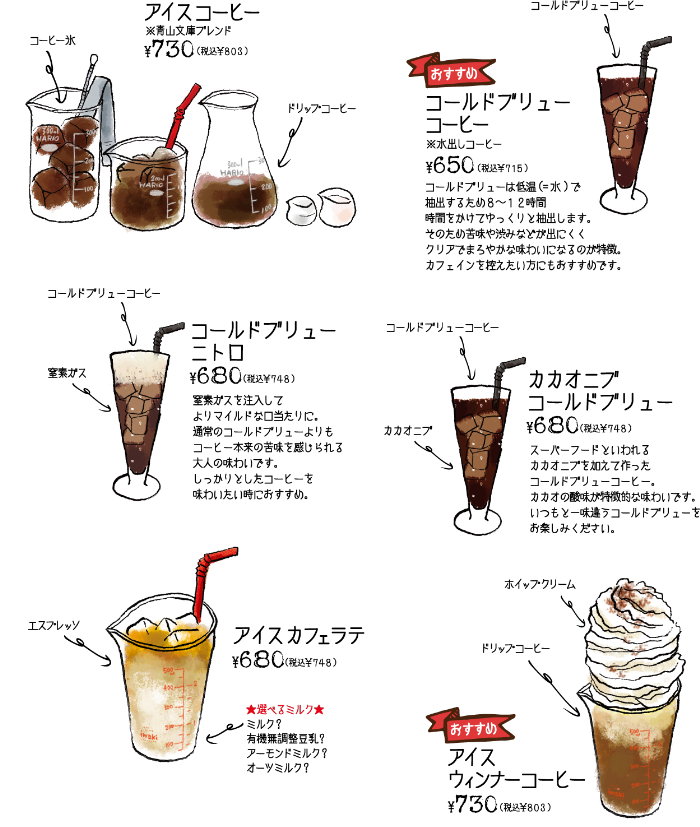 TOP 9 メニュー 9 アイスドリンク アイスドリンク ※食物アレルギーをお持ちのお客様はスタッフへお声掛けくださいませ。 ※お会計はお席にて承ります。スタッフへお声がけくださいませ。 ※メニュー内容、価格などは予告なく変更になる場合もございます。あらかじめご了承ください。 戻る 次へ