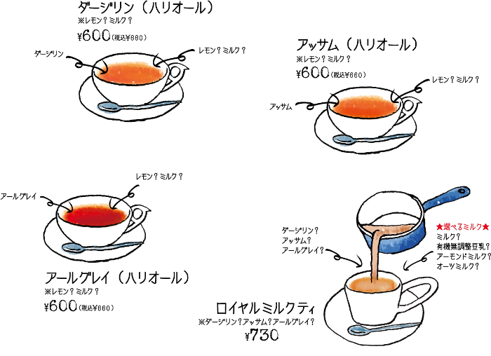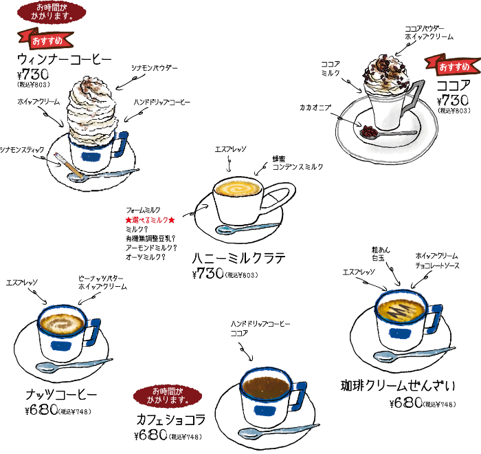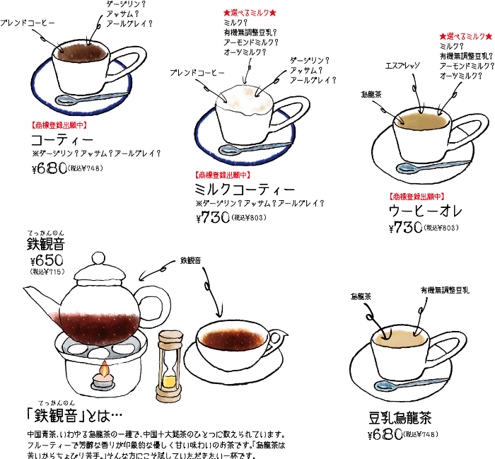 ※メニュー内容、価格などは予告なく変更になる場合もございます。あらかじめご了承ください。